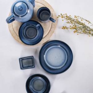 The intricate glazing technique creates a unique pattern on each piece, reflecting the movement and depth of ocean waves. Join us as we dive into the serene dining experience offered by the Biru Samudra collection. The collection’s design is both modern and timeless, with sleek lines and organic shapes that enhance its visual appeal.
