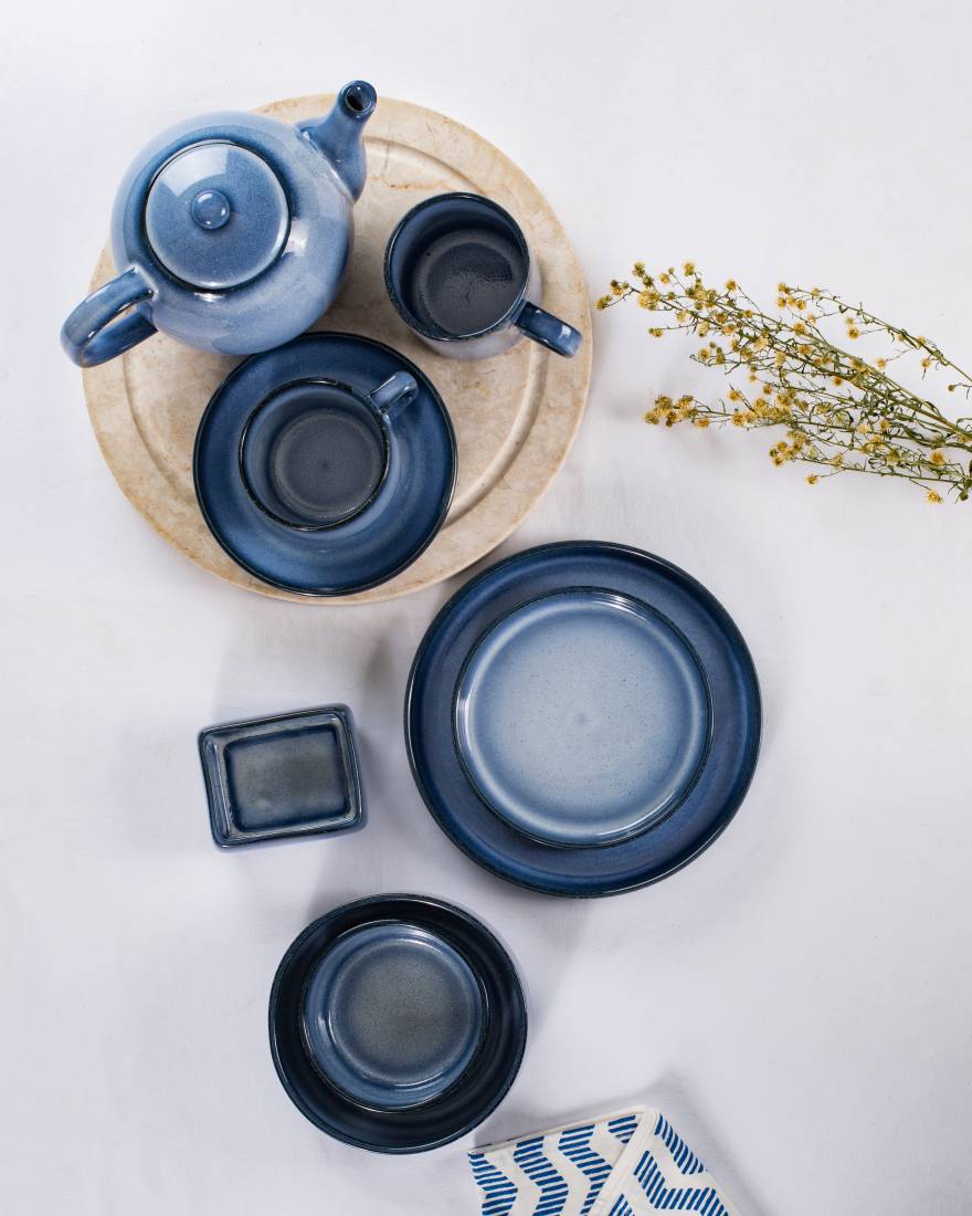 The intricate glazing technique creates a unique pattern on each piece, reflecting the movement and depth of ocean waves. Join us as we dive into the serene dining experience offered by the Biru Samudra collection. The collection’s design is both modern and timeless, with sleek lines and organic shapes that enhance its visual appeal.