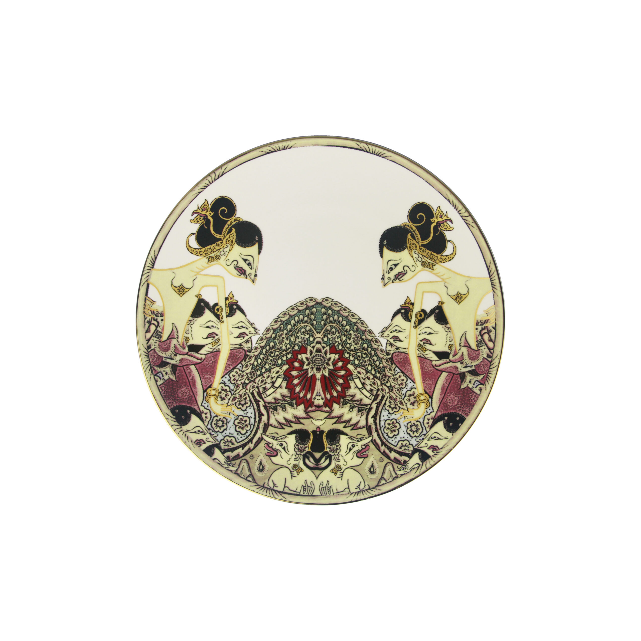 Deskripsi ZEN x Ghea Coupe Dessert Plate Wayang Ivory + Giftbox – diameter 22 cm