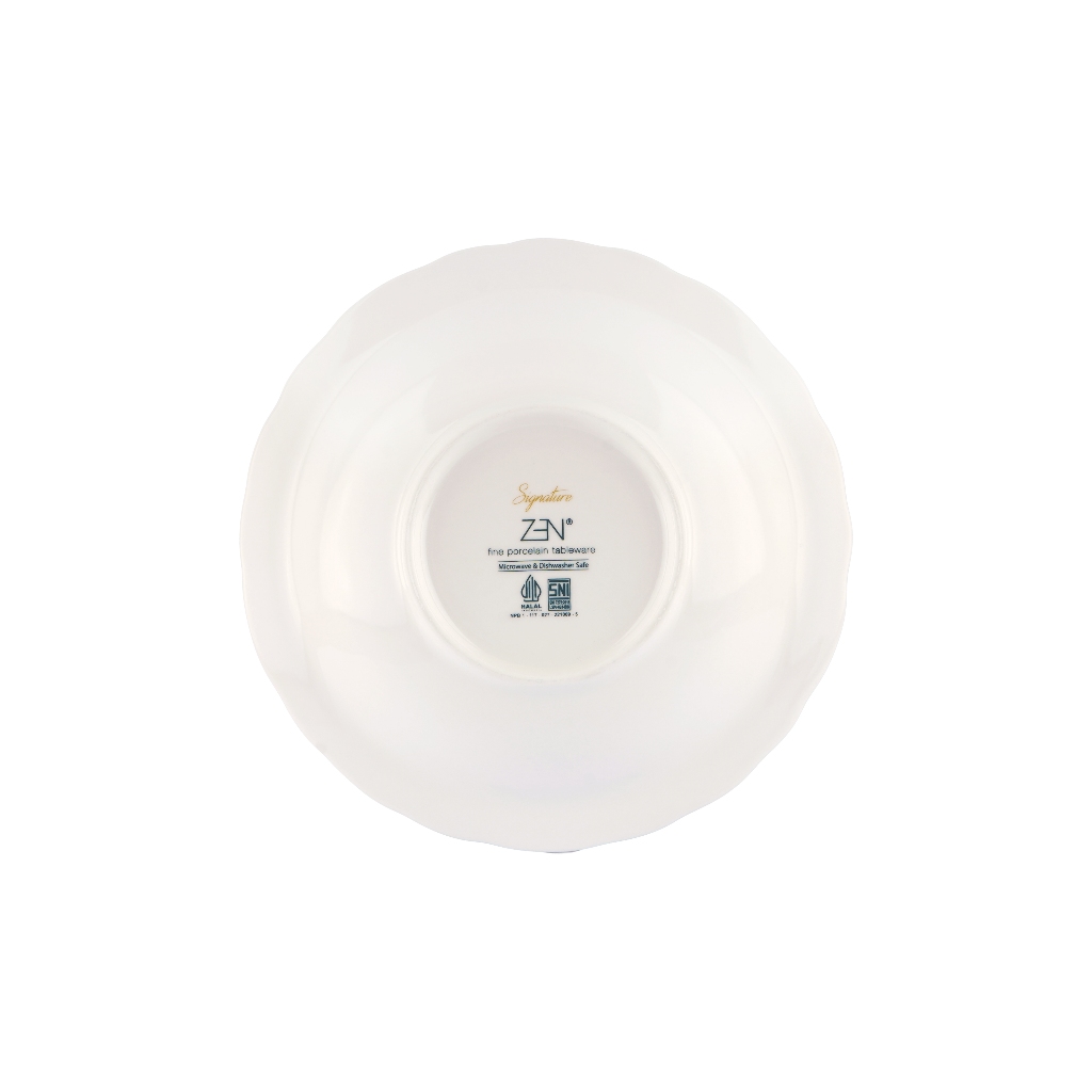 Koleksi ZEN dikenal memiliki desain yang simple, modern dengan bentuk yang elegan. Diproduksi dari bahan porcelain kualitas tinggi, menjadikan produk ini lebih kuat dan tahan lama dengan hasil finishing yang halus, putih bersih. Produk ini bersertifikasi SNI, Halal, dan Food Grade serta aman digunakan di microwave, dishwasher, dan freezer.