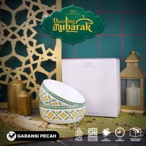 Menyambut Bulan Ramadhan kali ini, ZEN Tableware kembali menghadirkan koleksi terbaru “Dazzling Mubarak” dengan design yang bertemakan nuansa keindahan Islami cocok untuk dijadikan sebagai pelengkap hidangan makan bersama atau untuk hadiah ke orang spesial. Koleksi ZEN dikenal memiliki desain yang simple, modern dengan bentuk yang elegan. Diproduksi dari bahan porcelain kualitas tinggi, menjadikan produk ini lebih kuat dan tahan lama dengan hasil finishing yang halus, putih bersih. Produk ini bersertifikasi SNI, Halal dan aman digunakan di microwave, dishwasher, dan freezer.