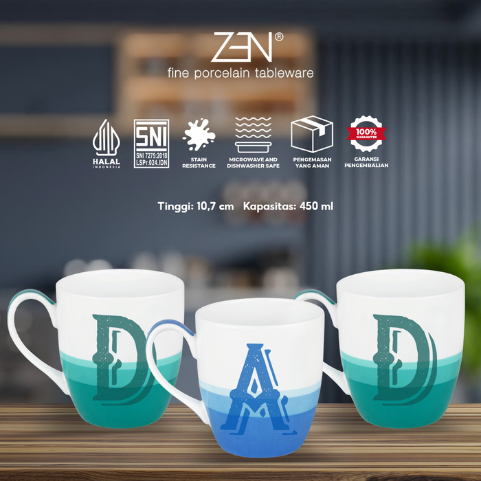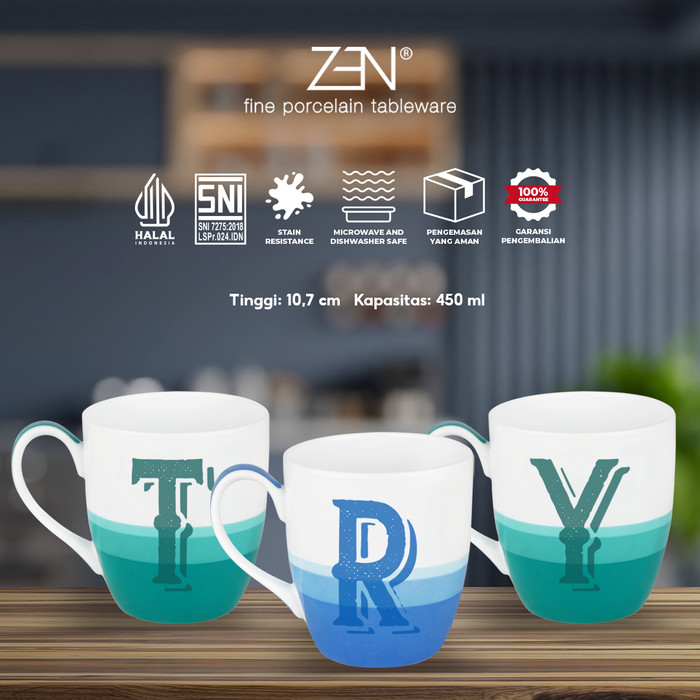 Koleksi terbaru dari ZEN yaitu Mug Alphabet. Sajikan minuman kamu dengan Mug Alphabet sesuai huruf yang kamu mau. Bisa sesuai inisial nama sendiri, nama pasangan, nama keluarga, atau seru-seruan dengan mengumpulkan semua koleksi Mug Alphabet menjadi suatu huruf yang kamu mau atau personalized. Kamu juga bisa kirim Mug Alphabet ini sebagai hadiah dan gratis giftcard loh, kamu tinggal kasih note ya.