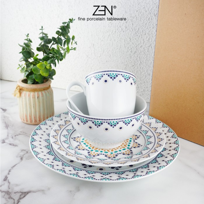 Koleksi ZEN dikenal memiliki desain yang simple, modern dengan bentuk yang elegan. Diproduksi dari bahan porcelain kualitas tinggi, menjadikan produk ini lebih kuat dan tahan lama dengan hasil finishing yang halus, putih bersih. Produk ini bersertifikasi SNI dan aman digunakan di microwave, dishwasher, dan freezer.