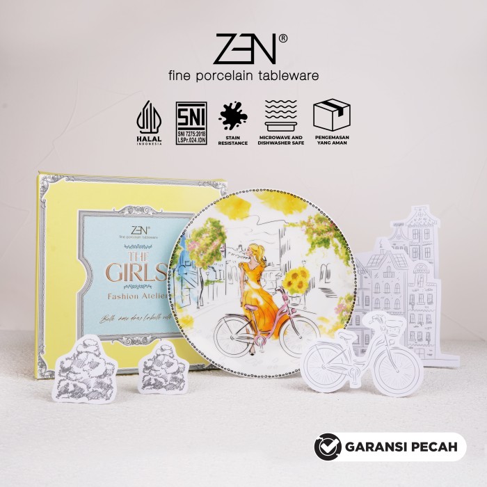 Koleksi ZEN dikenal memiliki desain yang simple, modern dengan bentuk yang elegan. Diproduksi dari bahan porcelain kualitas tinggi, menjadikan produk ini lebih kuat dan tahan lama dengan hasil finishing yang halus, putih bersih. Produk ini bersertifikasi SNI, Halal, dan Food Grade. Aman digunakan di microwave, dishwasher, dan freezer.