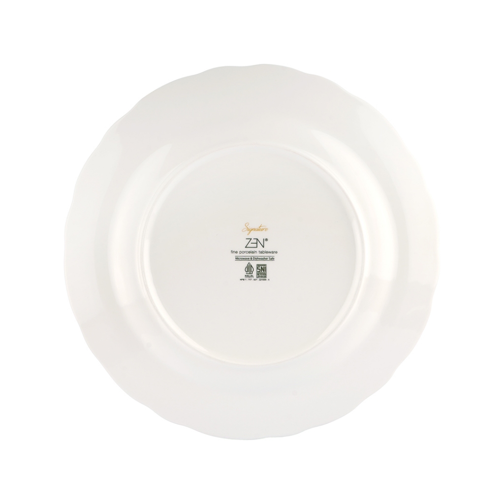Koleksi ZEN dikenal memiliki desain yang simple, modern dengan bentuk yang elegan. Diproduksi dari bahan porcelain kualitas tinggi, menjadikan produk ini lebih kuat dan tahan lama dengan hasil finishing yang halus, putih bersih. Produk ini bersertifikasi SNI, Halal, dan Food Grade serta aman digunakan di microwave, dishwasher, dan freezer.