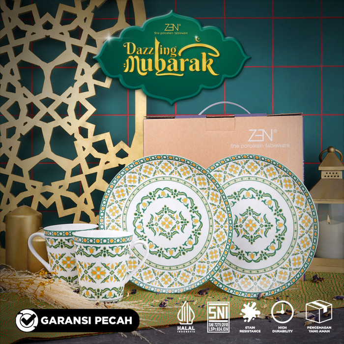 Menyambut Bulan Ramadhan kali ini, ZEN Tableware kembali menghadirkan koleksi terbaru “Dazzling Mubarak” dengan design yang bertemakan nuansa keindahan Islami cocok untuk dijadikan sebagai pelengkap hidangan makan bersama atau untuk hadiah ke orang spesial. Koleksi ZEN dikenal memiliki desain yang simple, modern dengan bentuk yang elegan. Diproduksi dari bahan porcelain kualitas tinggi, menjadikan produk ini lebih kuat dan tahan lama dengan hasil finishing yang halus, putih bersih. Produk ini bersertifikasi SNI, Halal dan aman digunakan di microwave, dishwasher, dan freezer.