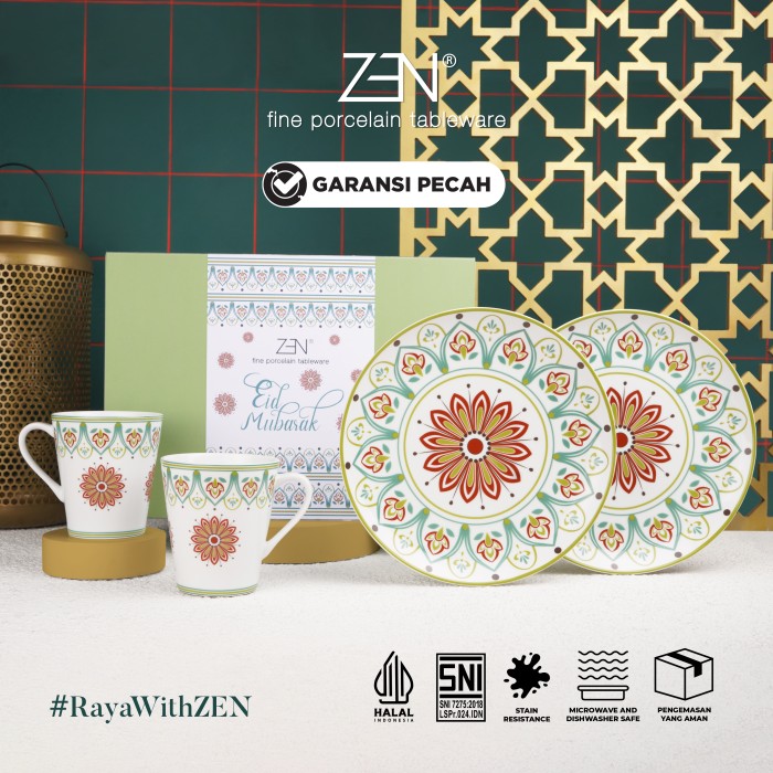 Menyambut Bulan Ramadhan kali ini, ZEN Tableware kembali menghadirkan koleksi terbaru "Green moroccan" dengan design yang bertemakan nuansa keindahan Islami cocok untuk dijadikan sebagai pelengkap hidangan makan bersama atau untuk hadiah ke orang spesial. Koleksi ZEN dikenal memiliki desain yang simple, modern dengan bentuk yang elegan. Diproduksi dari bahan porcelain kualitas tinggi, menjadikan produk ini lebih kuat dan tahan lama dengan hasil finishing yang halus, putih bersih. Produk ini bersertifikasi SNI, Halal dan aman digunakan di microwave, dishwasher, dan freezer.