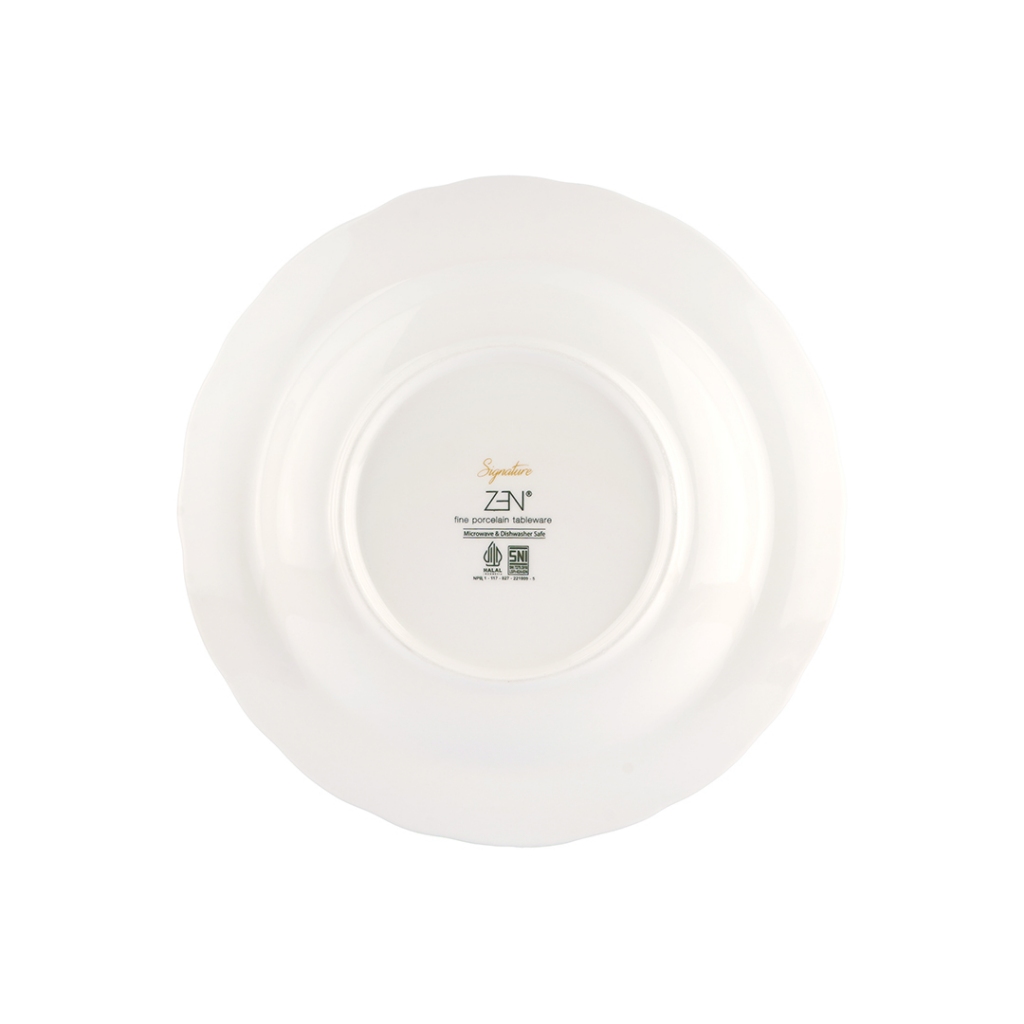 Koleksi ZEN dikenal memiliki desain yang simple, modern dengan bentuk yang elegan. Diproduksi dari bahan porcelain kualitas tinggi, menjadikan produk ini lebih kuat dan tahan lama dengan hasil finishing yang halus, putih bersih. Produk ini bersertifikasi SNI, Halal, dan Food Grade serta aman digunakan di microwave, dishwasher, dan freezer.