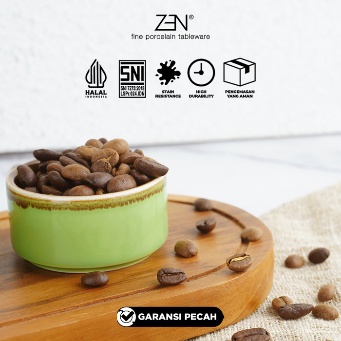 Koleksi ZEN dikenal memiliki desain yang simple, modern dengan bentuk yang elegan. Diproduksi dari bahan porcelain kualitas tinggi, menjadikan produk ini lebih kuat dan tahan lama dengan hasil finishing yang halus, putih bersih. Produk ini bersertifikasi SNI dan aman digunakan di microwave, dishwasher, dan freezer.