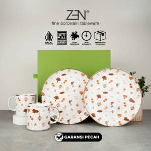 Koleksi ZEN dikenal memiliki desain yang simple, modern dengan bentuk yang elegan. Diproduksi dari bahan porcelain kualitas tinggi, menjadikan produk ini lebih kuat dan tahan lama dengan hasil finishing yang halus, putih bersih. Produk ini bersertifikasi SNI dan Food Grade.