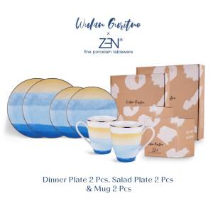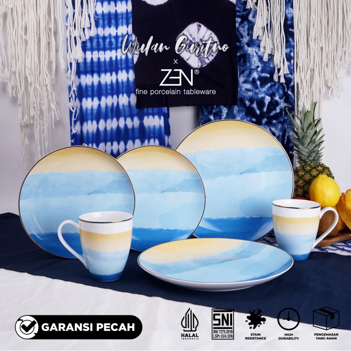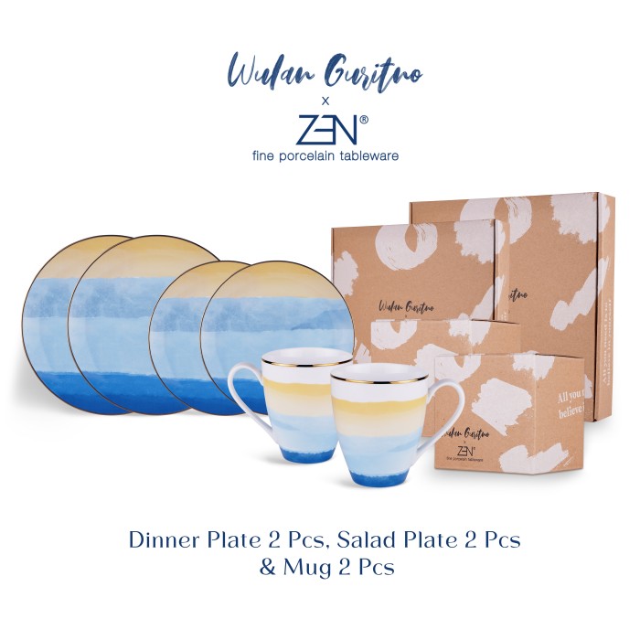 ZEN Tableware dan Wulan Guritno menghadirkan produk yang fresh dalam kolaborasi perdana dengan tema Tie dye. Koleksi kolaborasi BLISSFUL ASHA by Wulan Guritno yang merupakan karya kolaborasi perdana ZEN dengan Wulan Guritno ini mengusung motif Tie Dye yang lekat dengan dunia fashion, Tie Dye yang naik daun Kembali di awal pandemi ini di pilih Wulan untuk motif karya tableware pertamanya bersama ZEN Tableware,BLISSFUL ASHA by Wulan Guritno hadir dalam dua pilihan koleksi yaitu BLISSFUL ASHA by Wulan Guritno dan BLISSFUL SPLASH by Wulan Guritno, dengan dominasi biru dan aksen gold yang mewah BLISSFUL ASHA by Wulan Guritno sangat cocok dipadu-padankan dengan dekorasi rumah modern dan minimalis. Hadirkan sentuhan elegan dan ketenangan di ruang makan dengan BLISSFUL ASHA by Wulan Guritno. Perpaduan warna biru yang tenang dan detail emas mewah menciptakan suasana harmonis yang dapat mengubah ruang makan Anda menjadi lebih hangat. Wulan sengaja mendesain koleksi nya agar Fleksibel dan mudah dipadu padankan untuk menciptakan suasana yang unik dan personal.