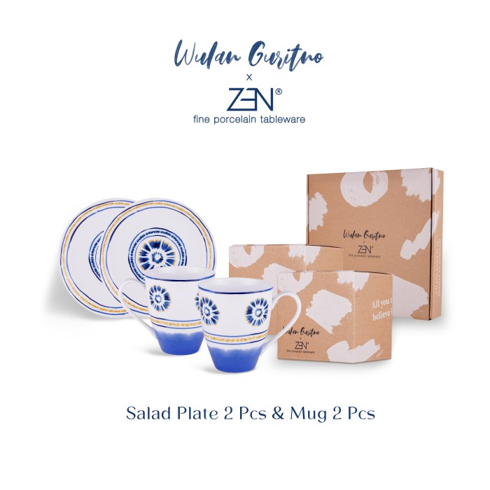 ZEN Tableware dan Wulan Guritno menghadirkan produk yang fresh dalam kolaborasi perdana dengan tema Tie dye. Koleksi kolaborasi BLISSFUL ASHA by Wulan Guritno yang merupakan karya kolaborasi perdana ZEN dengan Wulan Guritno ini mengusung motif Tie Dye yang lekat dengan dunia fashion, Tie Dye yang naik daun Kembali di awal pandemi ini di pilih Wulan untuk motif karya tableware pertamanya bersama ZEN Tableware,BLISSFUL ASHA by Wulan Guritno hadir dalam dua pilihan koleksi yaitu BLISSFUL ASHA by Wulan Guritno dan BLISSFUL SPLASH by Wulan Guritno, dengan dominasi biru dan aksen gold yang mewah BLISSFUL ASHA by Wulan Guritno sangat cocok dipadu-padankan dengan dekorasi rumah modern dan minimalis. Hadirkan sentuhan elegan dan ketenangan di ruang makan dengan BLISSFUL ASHA by Wulan Guritno. Perpaduan warna biru yang tenang dan detail emas mewah menciptakan suasana harmonis yang dapat mengubah ruang makan Anda menjadi lebih hangat. Wulan sengaja mendesain koleksi nya agar Fleksibel dan mudah dipadu padankan untuk menciptakan suasana yang unik dan personal.